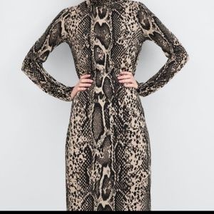 Zara Snakeskin Longsleeve Turtleneck Dress