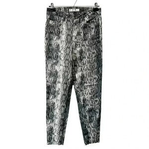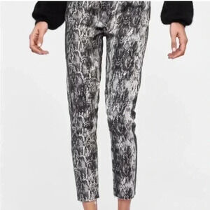 Zara Snakeskin Print Jeans High Waisted Ankle Cropped Raw Hem Grey Cream Size 2