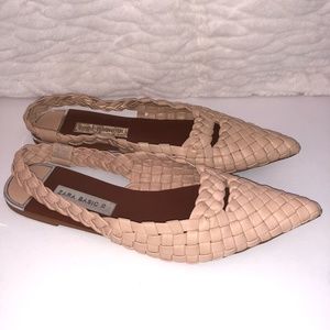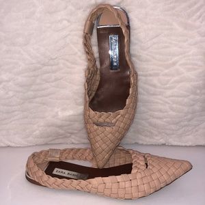 Zara Soft Nude-Pink Woven Sling-Back Flats Size 10