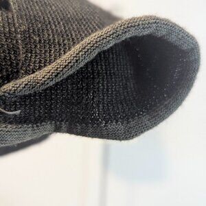 Asymmetric split sweater dress. Zara. Deep V-neck. Dramatic side splits create deconstructed silhouette. Lettuce edge detail on cuffs. Hi-low hem. Dark forest green and black. Knit construction.