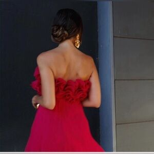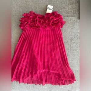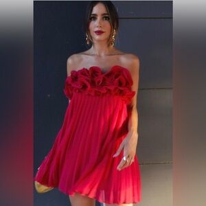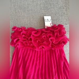 Zara Strapless Pleated Ruffle Mini Dress • Size S • Raspberry Red • NWT