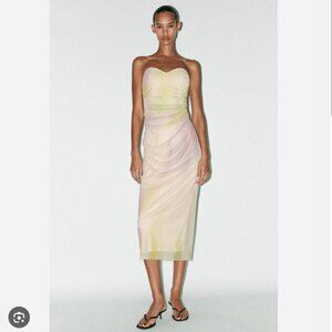Zara Strapless Tulle Tie Dye Midi Dress NWT Size Small