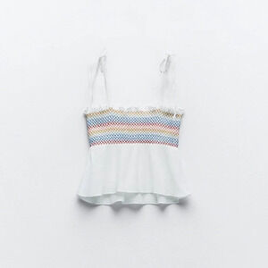 Zara Strappy Elasticized Smocked Top Rainbow Ecru NWT Size XS