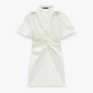 Zara Stretch Linen Blend Shirt Mini Dress Ecru White Size Small