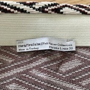 Zara Trafaluc stretchy mini skirt size L Black, White, Maroon 60% polyester 24% cotton 14% viscose 2% elastane