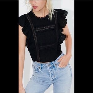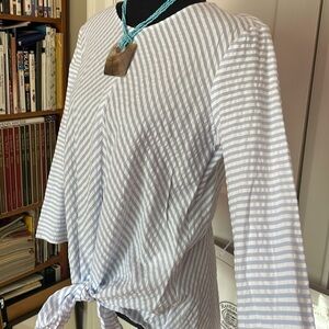 Zara Striped Blue and White Tie Front 3/4 Sleeve Blouse 💯 Cotton Size M