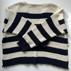 Zara Striped Chunky Knit Sweater Blue Cream V Neck Boxy Fit Nautical Preppy Sz L