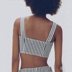 SOLD Zara Striped Denim Cropped Buster Top NWOT - Size X-Large