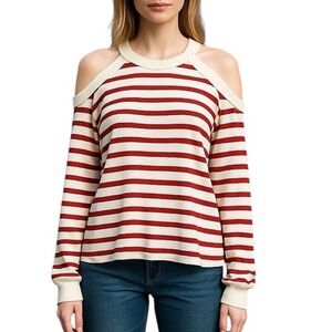 💎 Zara Striped Long Sleeve Cold Shoulder Top