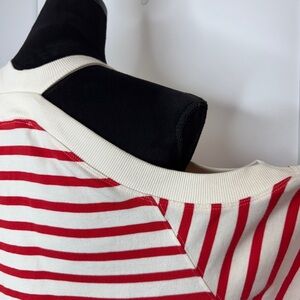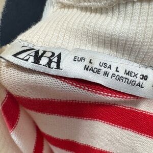 Keywords: Zara cold shoulder top, striped long sleeve shirt, red beige knit top