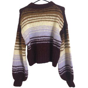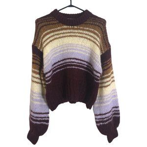 Zara Striped Multi-Color Cropped Crew Neck Sweater