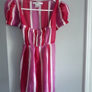 Long pink bow/belt (attached) that you can tie as you please (e.g., front, side, back)