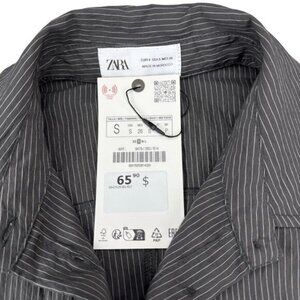 Zara Striped Pocket Modal Long Sleeve Shirt Size Small
