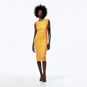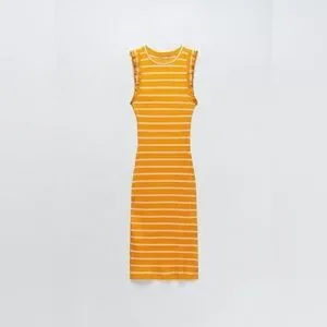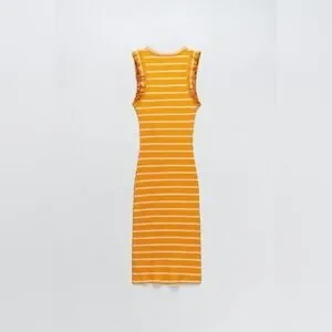 Zara Striped Ruffle Ribbed Dress Size Large