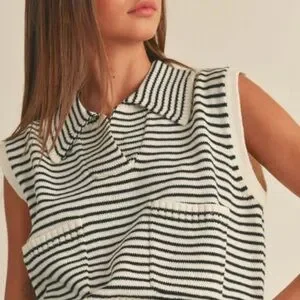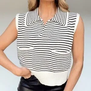 Elevate your style with this chic striped sleeveless knit top. Perfect for any occasion, either dressed up or more casual look!