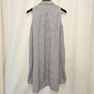 Chic sleeveless dress with a button-down front. Features a stylish striped pattern.
