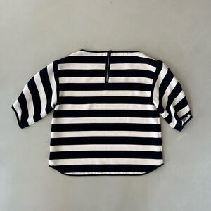 Elevate your wardrobe with this chic Navy and White Striped T-shirt from Zara! Featuring elegant puffed sleeves adorned with delicate pearl details, this top effortlessly blends casual and sophisticated styles. Perfect for taking your look from day to night, it pairs seamlessly with jeans or skirts for a stylish daytime vibe, or dresses up easily for evening wear. A must-have addition to any fashionista's closet. Don’t miss out on this stunning statement piece!