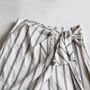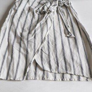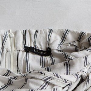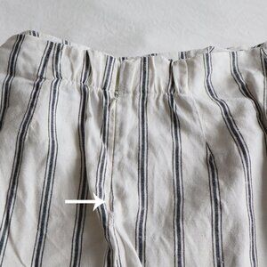 Great used condition, only worn a few times. There is a small tear at the back zipper (see photo). Size M with some stretch along the waistband. Zipper closure at the back.