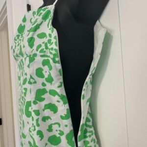 Details: side zipper closure, square neckline, smocked back, adjustable straps, zebra cheetah/leopard green and white print, snap button on the bodysuit closure with two different lengths