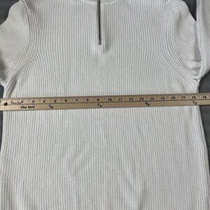 Zara Sweater Mens Medium White Ribbed Quarter Zip Pullover Cotton Knit Bulgaria