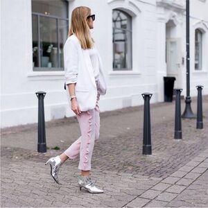 Zara Sz S Blogger’s Favourite Pastel Pink Trousers With Ruffles EUC