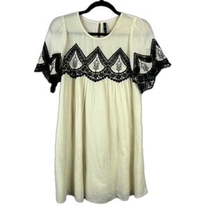 Zara TRF Collection Black Crochet Short Sleeve Tunic Mini Dress Medium Cream
