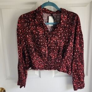 Zara TRF Collection Leopard Print Cropped Blouse Long Sleeves Button Up. Size Large