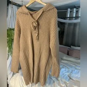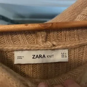 Zara Tan Ribbed Cowl Neck Sweater