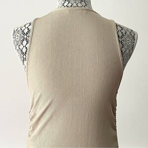 Zara Tan Ribbed Knit Ruched Drawstring Bodycon Dress Size S