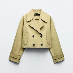 Stylish Zara trench coat. Double-breasted design. Classic lapel collar. Perfect for layering.