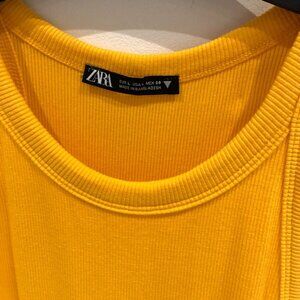 Zara Tangerine Orange High Neck Ribbed Midi Dress