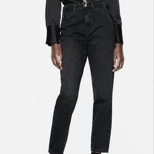 Zara Tapered Charcoal Black Stone Wash Mom Jeans L.E.