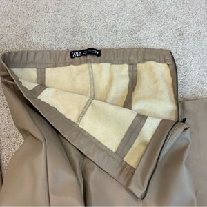 ZARA Taupe brown vegan faux leather leggings zipper slit hem Sz L