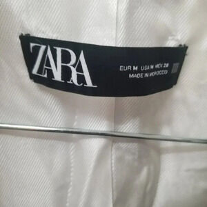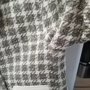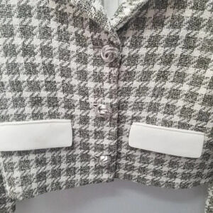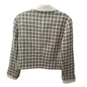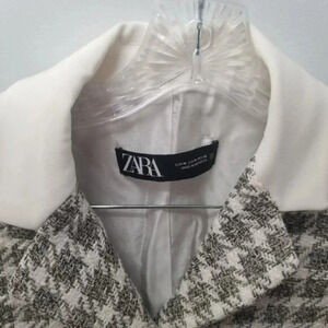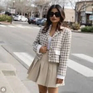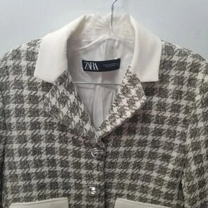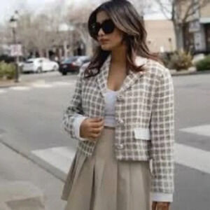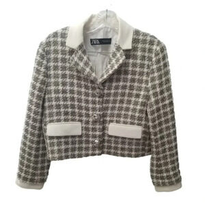 Zara Textured Plaid Houndstooth Cropped Jacket Blazer Ecru M