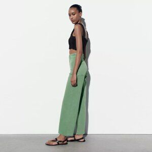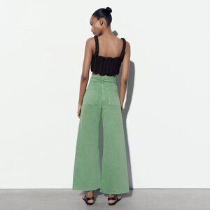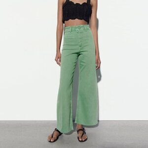 Zara The Marine Sailor Wide Leg Cotton Denim Mint Green Pant Trouser - Size 6