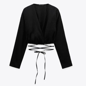 Zara Tie Waist Wrap crop shirt black size Large NEW @E