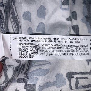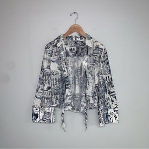 Zara Tied Button-down Shirt Size Small White Black Printed Top Flared Cuffs