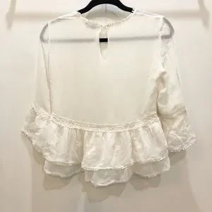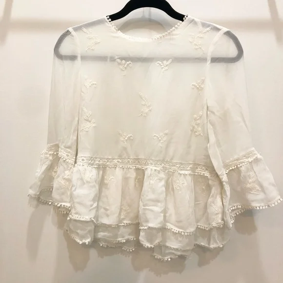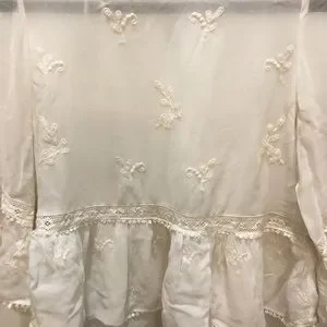 Cream coloured 3/4 sleeve sheer blouse with embroidering