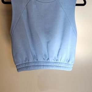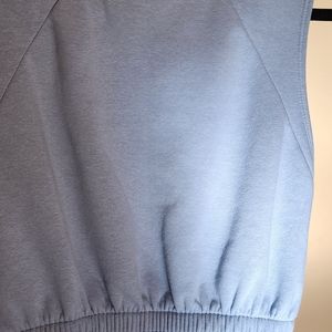 Nice top, short (almost a crop top). Sweatshirt material, blur/green color, super comfy!