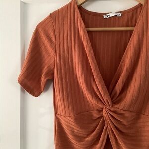 Cute cropped style Zara top. Size M . Colour brown/ orange, terracotta shade.