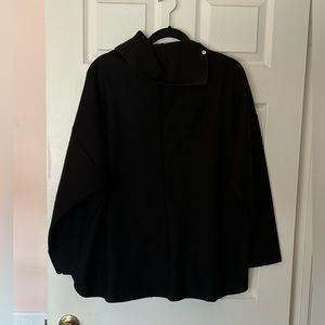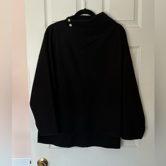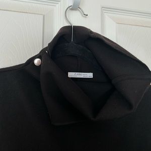 Zara Top - black - high neck - snap buttons on the side of neck (can wear open or closed) - soft material (removed the tag) - slight high low style - 26” inches pit to pit - front length 25” inches - back length 29” inches - felt looking - only worn a few times - makes any outfit - excellent preloved condition