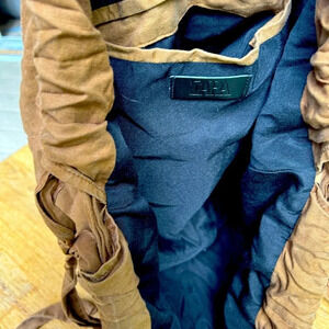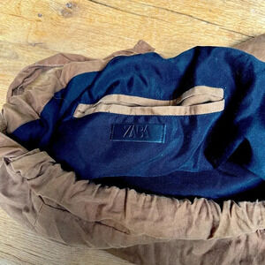 Zara Tote Bag Canvas Cotton Tie Up Front Pocket Packable Crossbody Brown Large