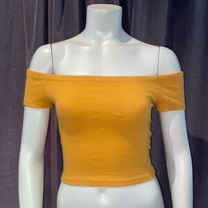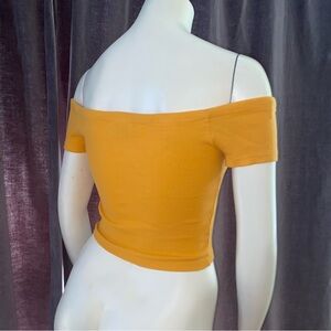 Zara Trafalgar Mustard Yellow Off the Shoulder Ribbed Crop Top Small