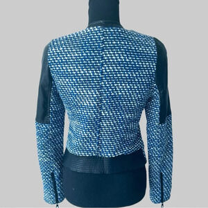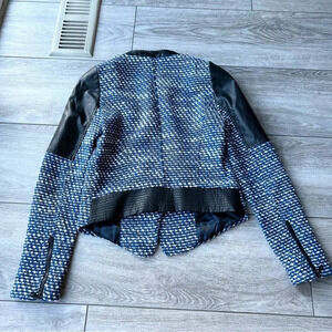 Zara Trafaluc Blue Black Tweed Faux Leather Moto Jacket