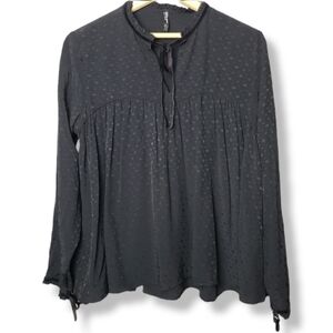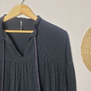 *photos were difficult to take as there is a pattern on the blouse. The blouse is very black but my camera stabilizer corrected to show pattern