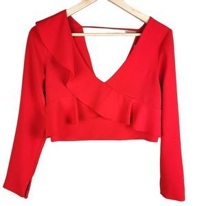 Cropped Top with Ruffles, Long Sleeve, Deep V Neck