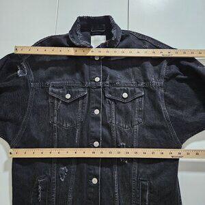 Zara Trafaluc Denim Oversize Jacket Women S Black Distressed Button Grunge Goth