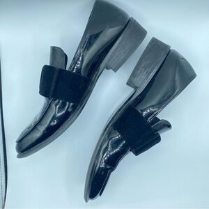 Sleek and stylish loafers with a glossy finish and a velvet bow. EU 39. A Perfect for formal events. Pre-Loved and in Excellent Condition.