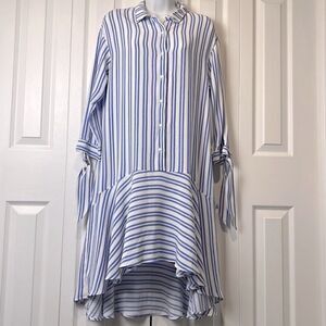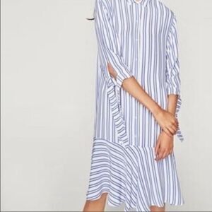 Zara Trafaluc High Low Vertical Striped 3/4 Sleeve Dress SZ XS (fits oversized)