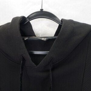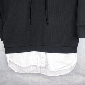 Zara Trafaluc Hooded Sweatshirt Womens XS Black Top White Cotton Shirt Underlay